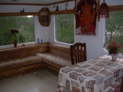 I vores hyggelige autocamper har vi indrettet et lille køkken, badeværelse og opholdsrum. I vores lasbilkasse har vi lavet de fineste værelser, hvor er der plads til 2 personer, der 2 værelser adskildt med et gardin.